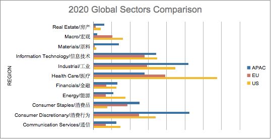 从行业访谈的需求量上对比,疫情管控较为有效和稳定的亚洲不再过多的关注医疗领域,而是更多的关注“Industrial / 工业”、“Consumer Discretionary / 消费行为 ”的赛道。而基于欧洲与美国疫情的反复,对 “Health Care/ 医疗” 的需求量持续在高位,尤其是美国市场。