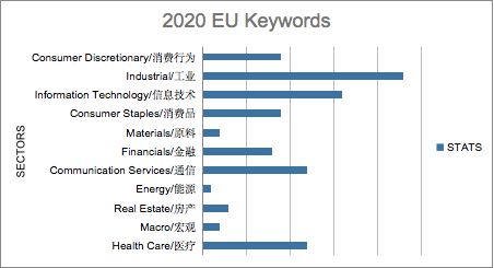 对比亚洲市场关心的企业,欧洲和美国市场仍以中国老牌巨头阿里巴巴和腾讯为主。有意思的是,当阿里巴巴淡出亚洲机构的焦点时,却是唯一一个同时被欧洲、美国两地同时关注的中国企业。同时,我们在时间线上还发现了欧洲在第三季度搜索了大量的“China”一词,巧合的是,第三季度正值美国大选期间。从亚洲和美国市场的关键词来看,两地并未受到政治的太多影响,相反,欧洲相对更关心宏观经济的变化。