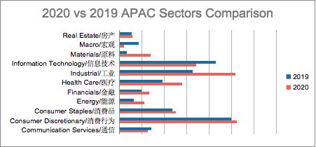 从赛道上来看,对比2019年榜单,2020年关于“Macro/宏观”的专家访谈需求量有明显的下降趋势,只有去年的24%。相反,“Materials/原料”专家访谈需求量是2019年的4倍多。“Consumer Discretionary/消费行为”、“Industrial/工业”两个赛道的专家访谈需求量最大。