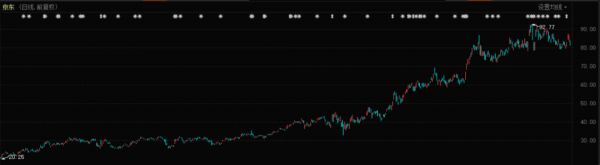 自2016年下半年开始,京东股价就开始连续上涨,涨势一直持续到2018年1月底,历时一年半有余,累计涨幅超过了130%。