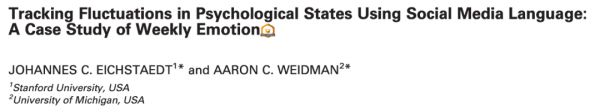 Eichstaedt 和 Weidman 的最新研究,则为利用社交媒体大数据分析、跟踪人的心理状态,提供了一个前沿案例。