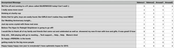 心理学研究助理为帖子所作出的「效价」和「唤起」注释