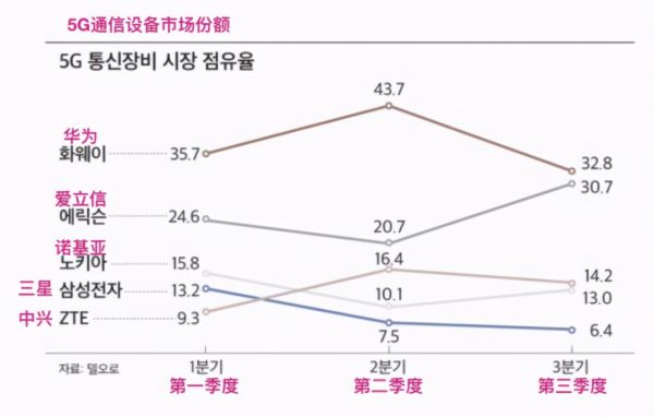 华为、中兴等国内厂商在国际市场上遇阻一定程度上为爱立信创造了机遇。从12月中旬市场研究机构Dell'Oro Group发布的报告中可以看出,第三季度在华为、中兴市场份额下降的背景下,份额第二的爱立信上升幅度最大,达到10%,与华为的市场份额的差距缩小到了2.1个百分点。
