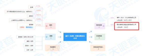 通过股权穿透发现,该公司由谦寻(杭州)控股有限责任公司100%持股,其疑似实控人为薇娅丈夫董海锋,共持股53.3%。