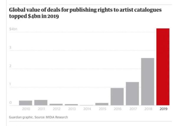 MIDiA的数据称,2019年全球老歌词曲版权的交易价值高达40亿美元,是2016年的4倍