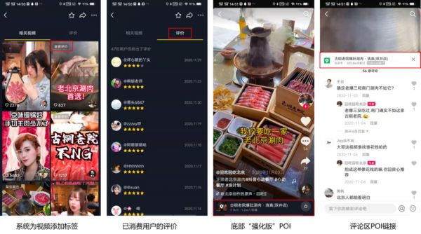 第二,为商户降低内容运营及创作难度。真正的抖音运营具有一定的门槛,90%以上的普通商户根本无法长期创作优质的视频内容,且企业号赛道本身就具有极强的营销属性,内容产生爆款的难度也会很大。在抖音主推POI聚合页的策略下,商户只需认领POI,推出团购活动,邀请达人、消费者拍摄内容即可。