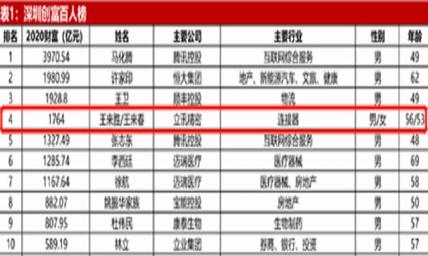 如今,王来春不仅常年屹立在胡润百富榜上,而且还在新财富近期发布的深圳创富百人榜上名列第四,财富值高达1764亿元,仅次于马化腾、许家印和顺丰的王卫。