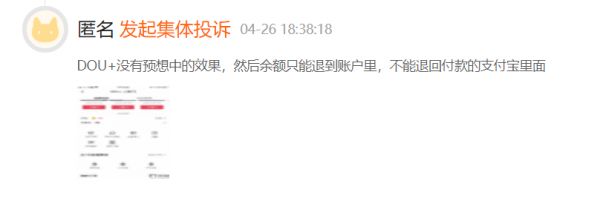 曾有很多广告主在网上投诉,对DOU+充入款项后无法退钱这条规则,表示出极大的无奈与质疑。其实,DOU+余额并非不存在提现方式,只是过于人工化和低效率,需要广告主向抖音的官方邮箱发送申请,并在内容中写明:“DOU+退款申请+抖音昵称”,但根据使用此途径退款的广告主反馈称,邮件好几次都石沉大海,从未见到对方回复。