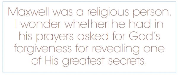 “有趣的是,麦克斯韦乃极为虔诚的教徒,我猜想他在祷告时也许祈求上帝宽恕其发现造物主创造光的秘密。”