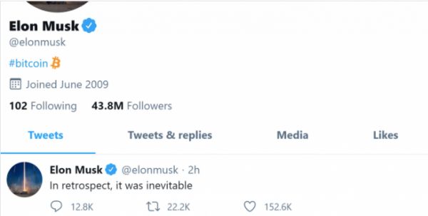 上周五,马斯克改了自己的推特简介,新简介只有一个词:Bitcoin。
