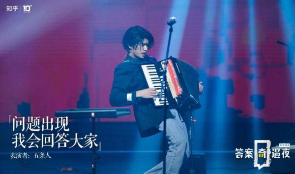 而从 15 个节目最终的呈现上看,这必然是一场知乎专属的,具备社区独特性的晚会。" 剧院式 " 的唯美概念,沉浸式的观看体验,再加上丰富的知乎味道的节目和内容形式。譬如说,五条人的《问题出现我会回答大家》所指的是知乎 " 有问题,就有答案 " 的特点。