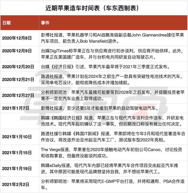 ▲媒体报道的近期苹果造车新进展