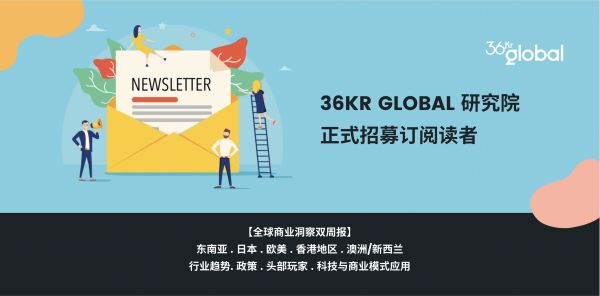 为了更好地助力中国企业全球化,通过 36Kr Global 在全球的覆盖以及资源,36Kr Global 旗下的研究院正式开始面向中国高度关注海外市场的企业决策者招募订阅会员,并在2/24号首先上线并开始推送【全球商业洞察双周报- Bi-weekly Newsletter】。欢迎填写表单订阅,加入到我们的社群交流和合作中来。