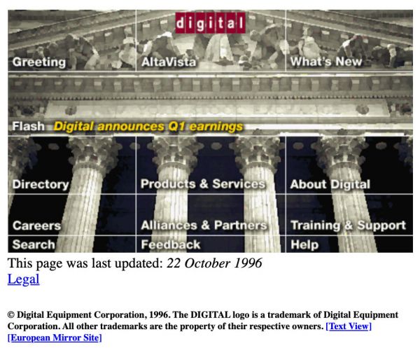 DEC对互联网并不陌生。1985年,该公司在互联网上注册了第一批商业域名之一:DEC.com,因为技术公司对顶级域名提出了要求。但是,1993年注册的Digital.com这个名字,在20世纪90年代是大多数用户与DEC联系在一起的,这要感谢AltaVista。