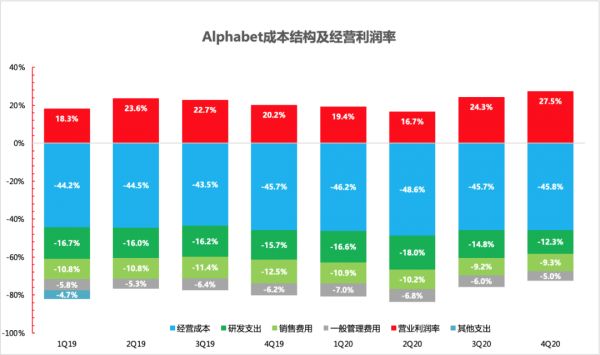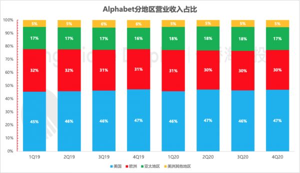 从地区分布来看,各地区收入结构基本保持稳定,欧美仍然是Alphabet的主要收入来源地区。