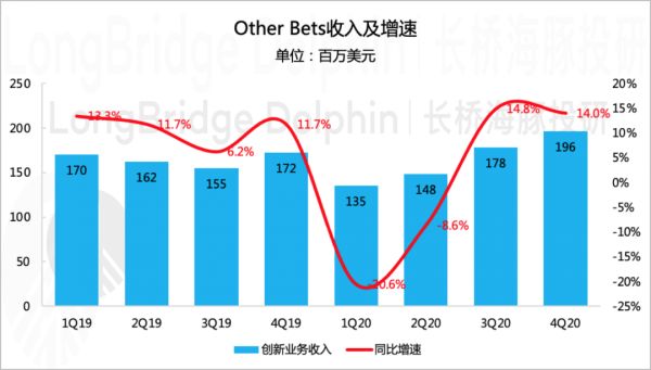 Q4创新业务实现收入2亿美元,主要由生命科学公司Verily带来,占总收入比重仅0.3%,与往年基本保持一致。