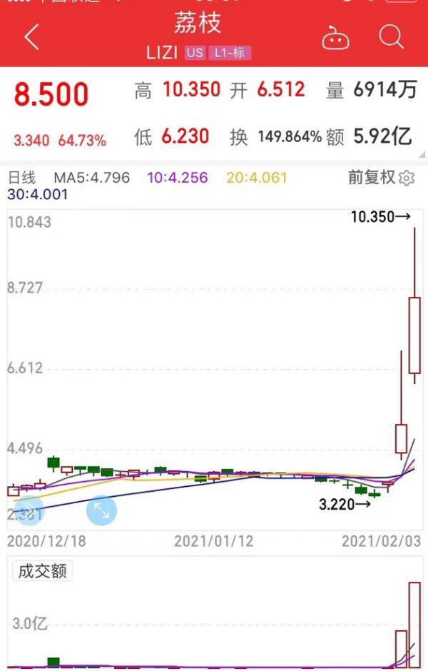 受到Clubhouse爆火带动,国内“音频行业第一股”荔枝3日收盘大涨64.73%,近三个交易日累计大涨158%!
