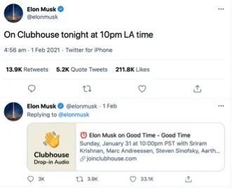 之所以Clubhouse突然爆火,互联网顶流马斯克功不可没。