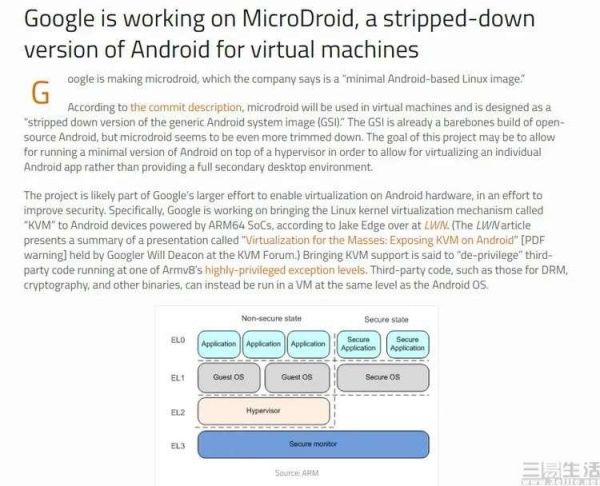 事实上,根据谷歌项目领导人威尔·迪肯(Will Deacon)此前在KVM(Kernel-based Virtual Machine,基于内核的虚拟机)论坛的发言,我们可以很容易地知道,谷歌正在为现有Android系统开发基于虚拟机技术的安全功能,而“MicroDroid”正是为此而生。
