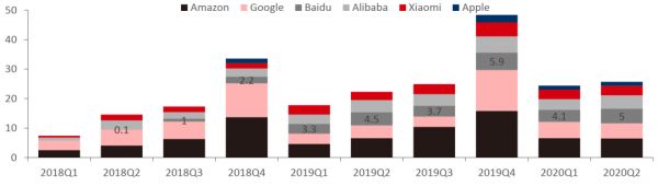 图5:全球智能音箱出货量,资料来源:IDC,中信证券