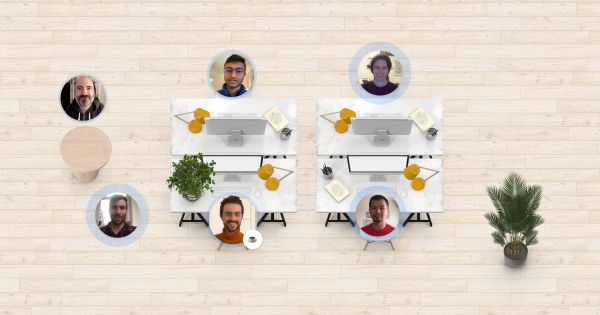因为Teamflow的设计是有空间感的,所以它可以让用户执行Slack、Zoom或Google Doc没法无法执行的操作。你可以在虚拟空间内移动你的气泡(Bubble),然后去跟同事对话,或者进入封闭空间进行私人对话或会议。你只能听到附近的人说的话。甚至点击一下同事你就可以马上跟对方见面。