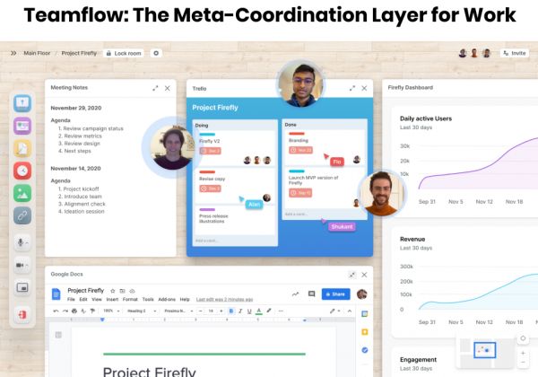 Teamflow把协作和沟通整合到了一起。在《协作之拱》(The Arc of Collaboration)那篇文章里,Kevin Kwok写到了工作的“元协调层”(meta-coordination layer):