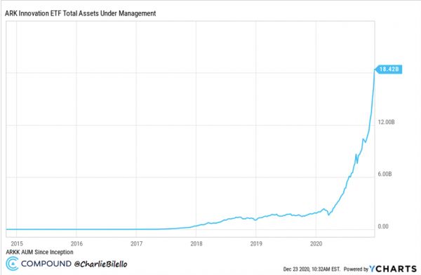 在押中了特斯拉和比特币之后,过去的一年,美国著名投资人凯瑟琳·伍德带领的ARK资管规模暴涨了11倍,成为了现象级ETF,伍德也被投资者们称为“牛市女王”,其看好的领域已经成为重要的投资风向标。