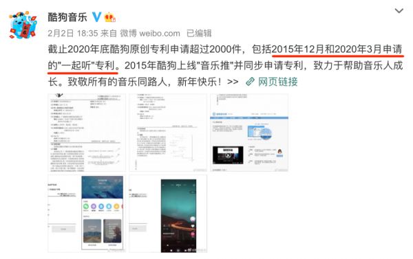 而两人一起听,其实就是最小群的存在。要说专利的覆盖面,酷狗的这个包含的功能场景更多。