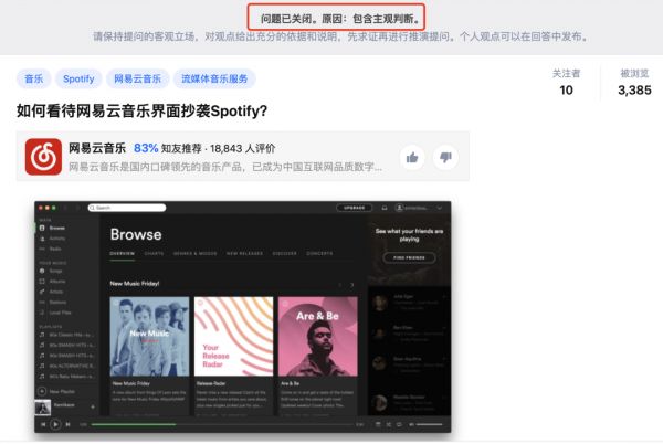 另外还有一个 2016 年的帖子,是说网易云抄袭 Spotify 的。