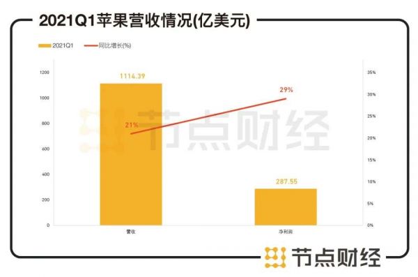 就在1月28日,华为的老对手苹果发布了2021年Q1财报(相当于2020财年Q4),这一季度中苹果整体营收达到1114.39亿美元,同比增长21%,创下单季营收新高;净利润为287.55亿美元,同比增长29%。