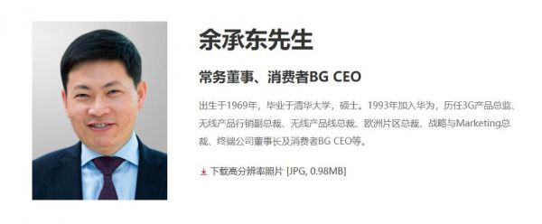 抛开上述原因,余承东被选中担任这一重大角色,和他过往的取得的成绩和经历息息相关。