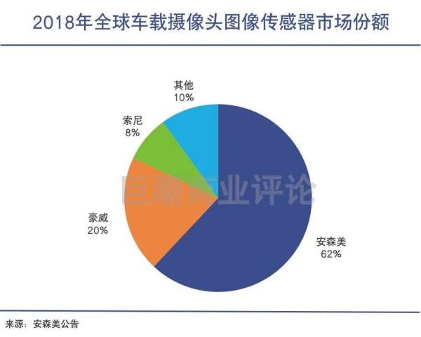 A股上市公司中,韦尔股份(SH:603501)2019年收购并表的北京豪威是全球车载CMOS图像传感器龙头之一。数据显示,2018年其在全球车载CMOS市场的份额约在20%左右。