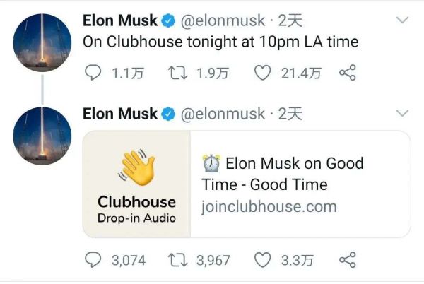 clubhouse的爆红中文互联网,得从科技圈“顶流”马斯克的一则推特说起。