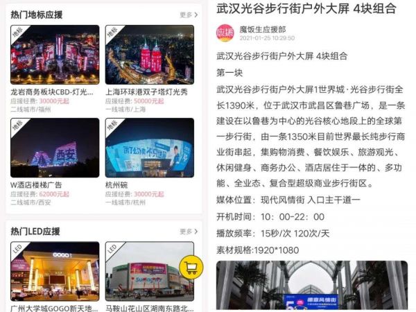 广告资源位购买页面:桃叭(左)和魔饭生(右)