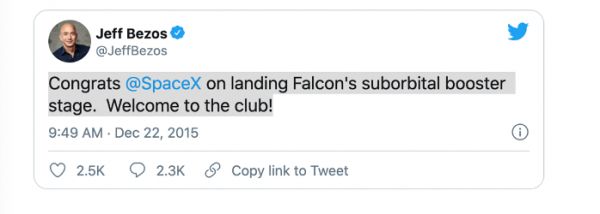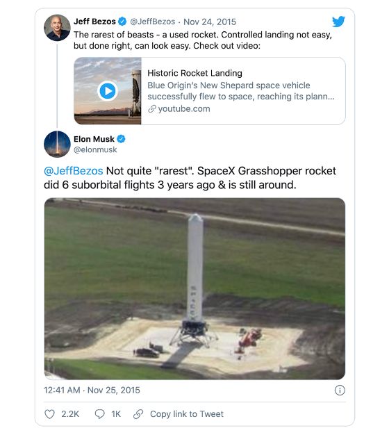 对此,马斯克在推特发文表示,“贝佐斯是在抄袭”。