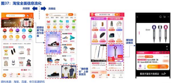 针对直播业务的发展,淘宝的内容呈现也从单一的搜索方式转向信息流化。据淘宝2018年的公开资料:相比单纯的图文,淘宝短视频内容能帮助商品提高20%转化率。