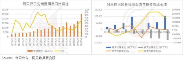 财报显示,2020Q1-Q4,阿里的营销费用同比增速持续增加,特别是Q3、Q4,增速分别达到了45%和60%。