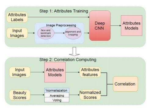 其中的主要思想是分析低级几何面部特征(如形状比、对称性、纹理),然后应用机器学习算法如支持向量机、K-近邻(K-NN)进行图像分类和美颜预测。也有算法以提取局部二值模型(LBP)和 Gabor 等特征的监督方式训练自动评分器,在训练内容中,对于美的评分是由人工评出的。