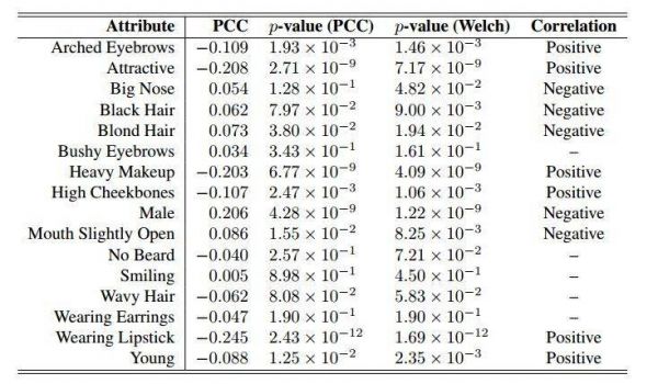 尽管在 [21, 41] 中存在一些不一致,但其中对于美的定义也存在一些共同之处。表 3 总结了两个相对较大的数据集中对美发挥正面或负面作用的一致特征。例如,浓妆、高鼻梁、涂口红等特征都会提升吸引力。相对的,大鼻子、偏男性化(指女性)、嘴唇微张则会对吸引力产生负面影响。