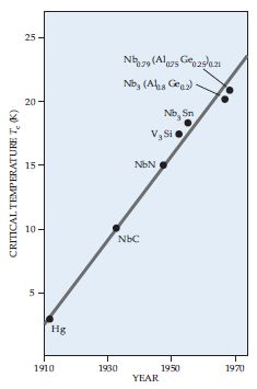 1970年代之前超导临界温度提升与时间呈线性关系