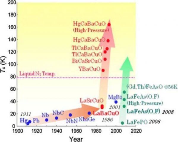 超导临界温度发展史总结在下图中: