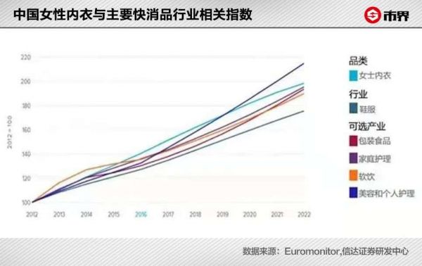 Euromonitor数据显示,2012年至2019年,中国女性内衣市场零售额的复合增长率为8.26%,远高于鞋服行业的平均水平。到2022年,其市场规模预计将增长至1973亿元。