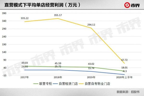 2020年上半年,受疫情影响,线下门店盈利更是出现大幅下滑,其中自营租赁门店首次出现单店亏损。