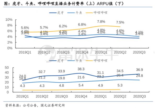 此外,与YY、虎牙等平台相比,快手的直播单用户金额已经远远高于平均水平,未来的增长天花板有限,甚至有下降的风险。主要的下降风险,或来自于带货主播无需再通过「挂榜」的方式购买流量,转而直接向快手购买公域流量的曝光度,从而转成线上营销收入。