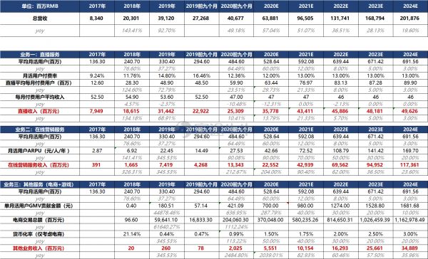基于上述两点的,我们预测快手的直播业务主要由用户规模增长拉动,单用户收入已经基本触顶,后续直播业务增长速度逐步下滑。