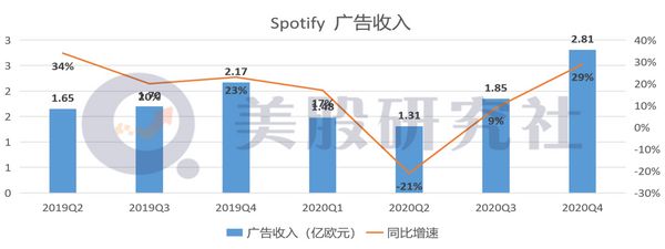 据财报显示,广告带来营收2.81亿欧元,同比大幅度增长29%,一方面可见播客这一新的广告支持平台增收奏效,另一方面也得益于假日季度的广告需求的增加。但仍然改变不了总体营收增长放缓的事实。