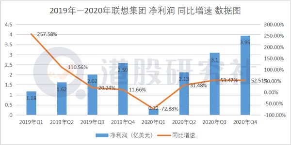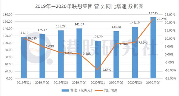 财报显示,联想集团2020年第四季度营收172.45亿美元,相比上年同期的141.03亿美元增长22.29%,环比上个季度的145.19亿美元增长18.78%。