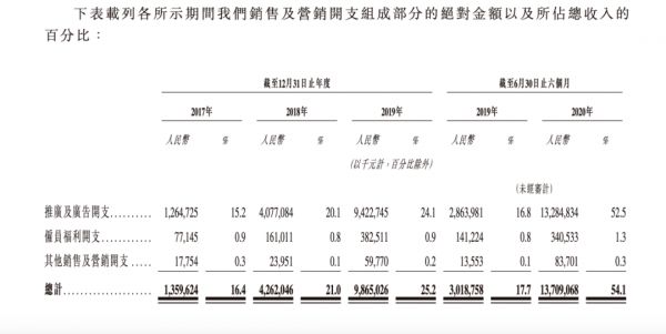 快手提醒风险其实说的很清楚,接下来主要投入资金的部分是营销和研发。先说说前者,招股书显示截至2020年上半年,快手推广及广告开支为132.85亿元,占到同期经营开支的一半以上,而且快手预计这部分开支的绝对金额还将持续增加。