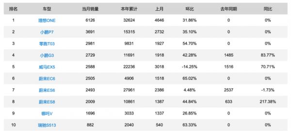 2020年12月国内造车新势力销量排行,图源盖世汽车