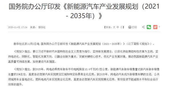 国务院颁发的新能源汽车产业规划,图源中国政府网